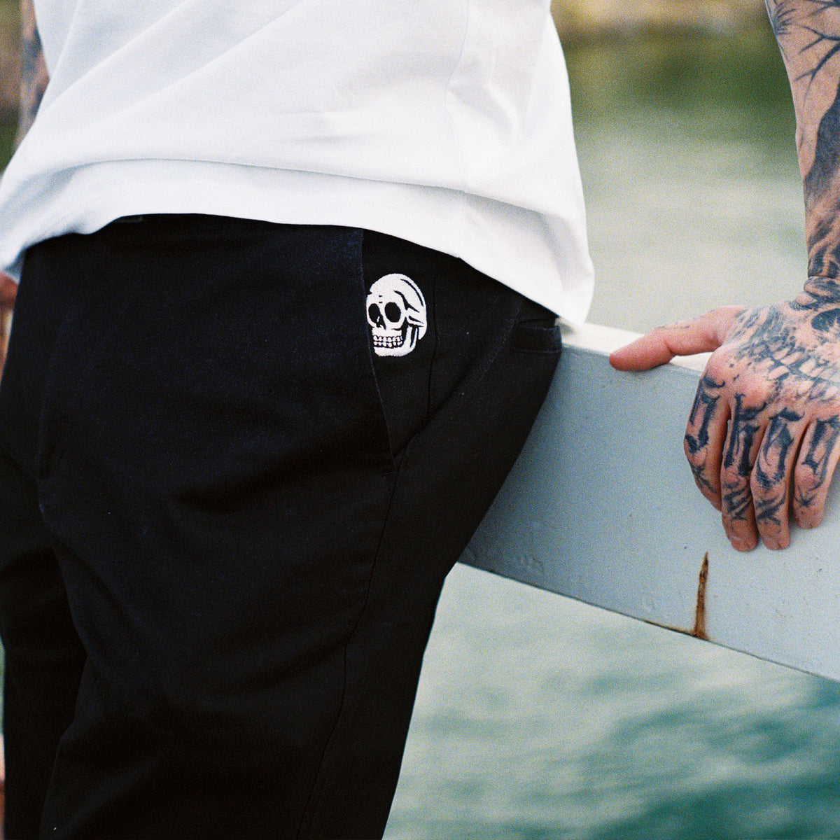 - Aufgestickte Sense im linken vorderen Taschenbereich