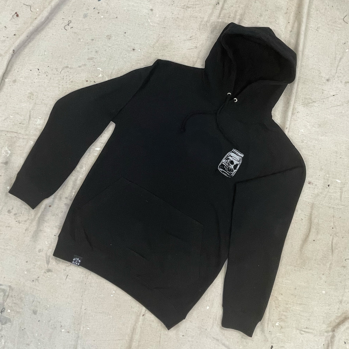 - Aufdruck eines Totenkopfs in einem Gefäß auf der Vordertasche