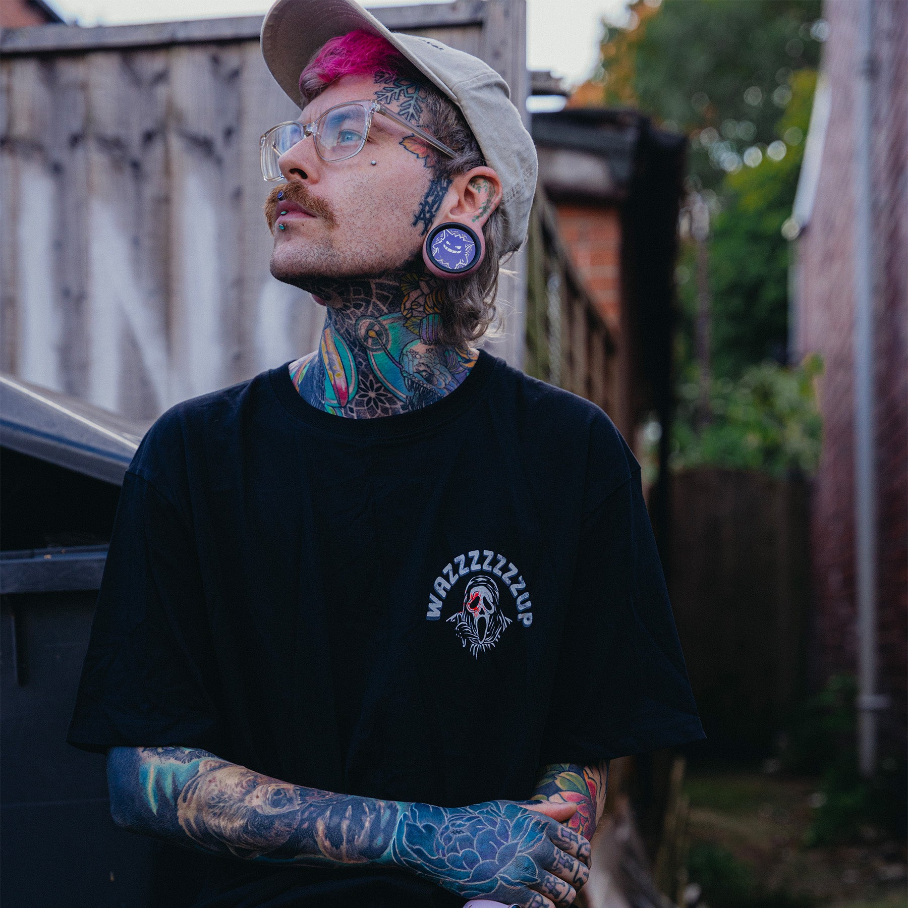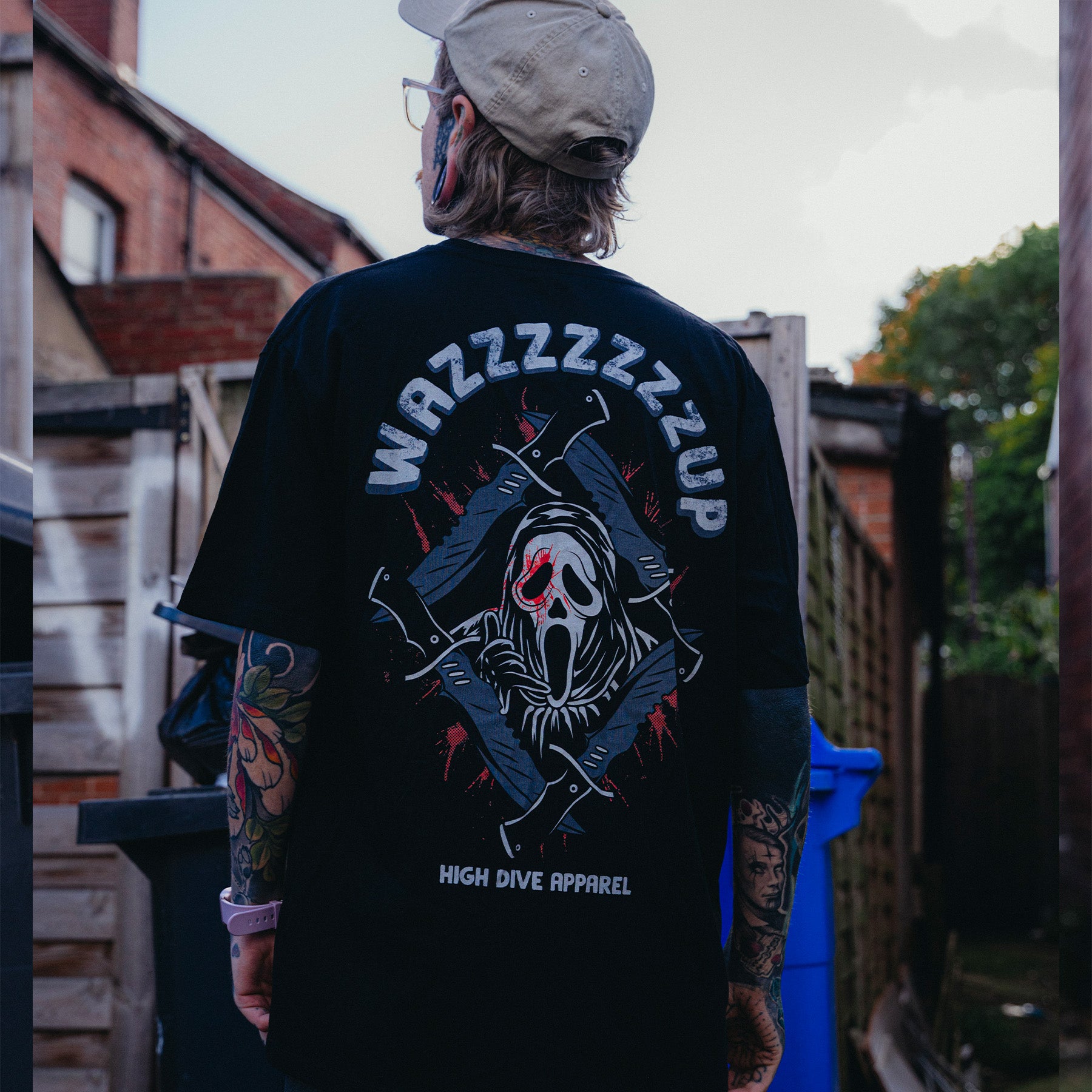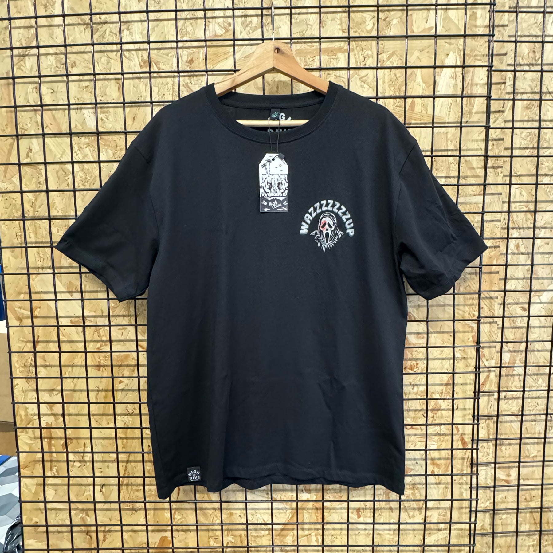 • Voller Rückendruck unseres „Wazzzzzzup“-Designs, mit Wazzzzzzup auf der Brust