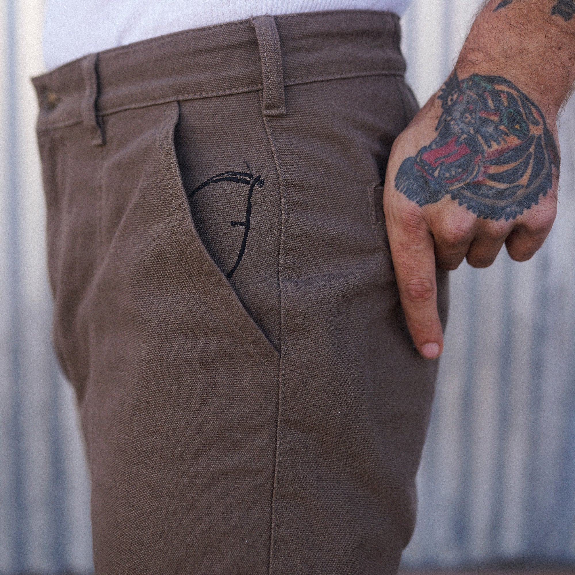 • Guadaña bordada en el bolsillo delantero izquierdo