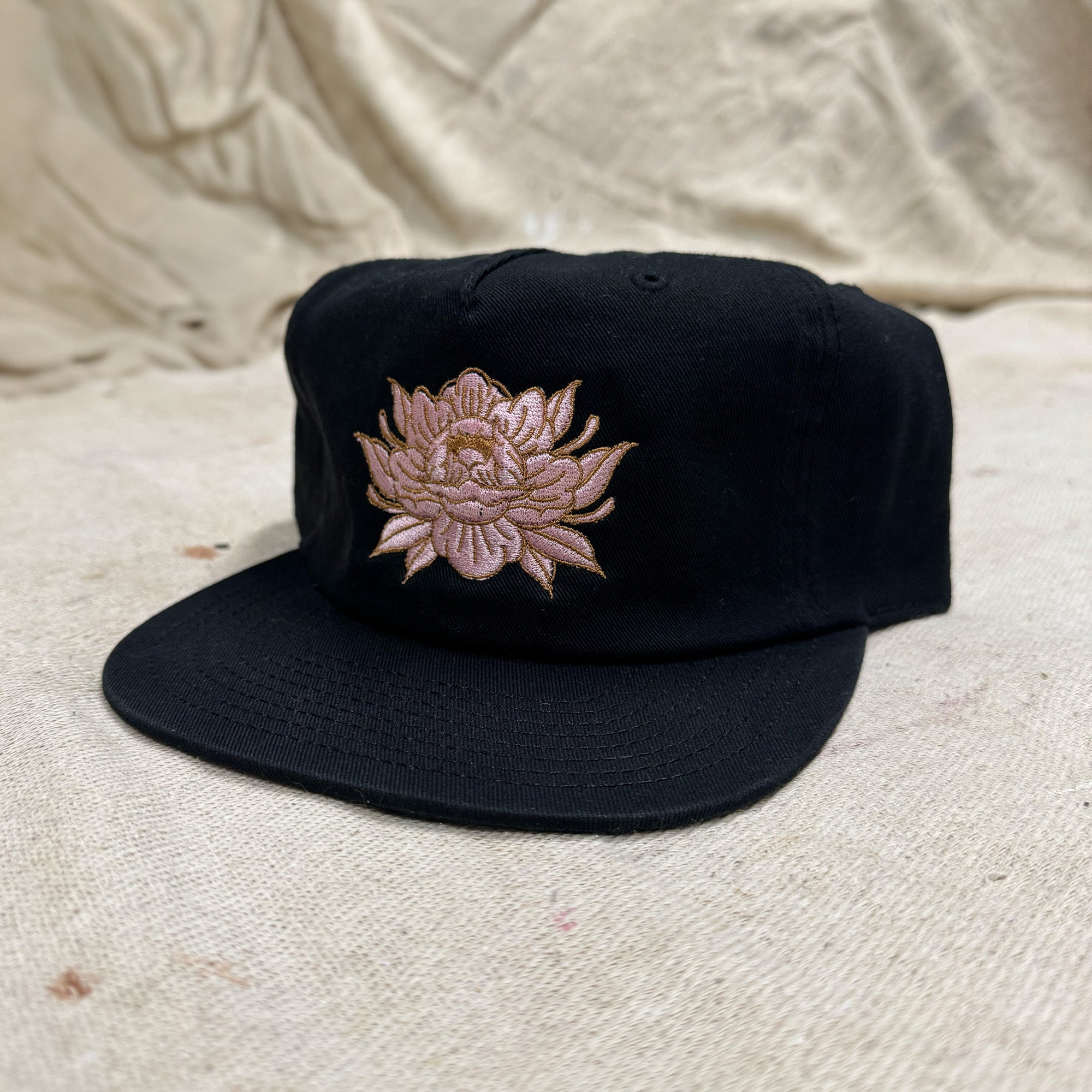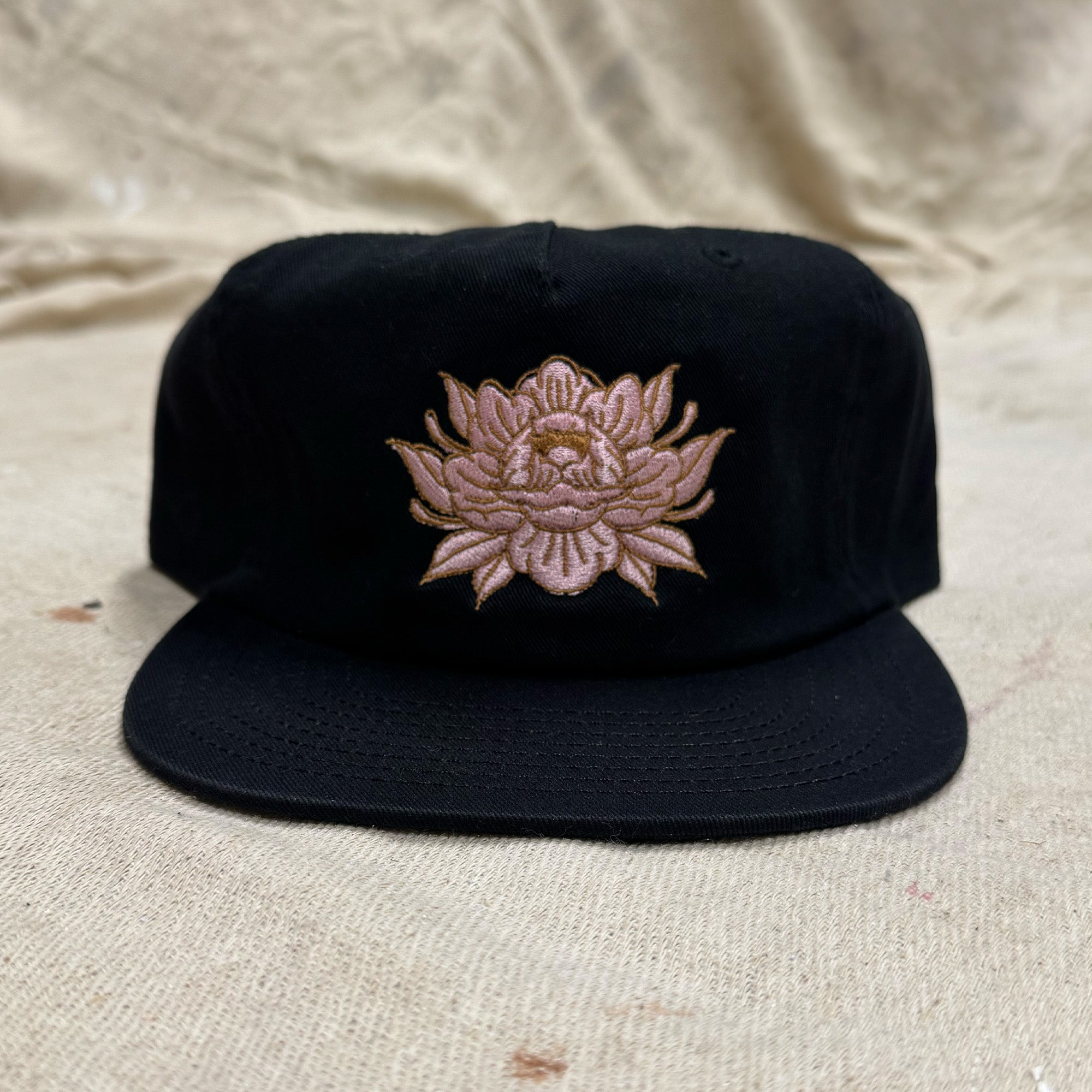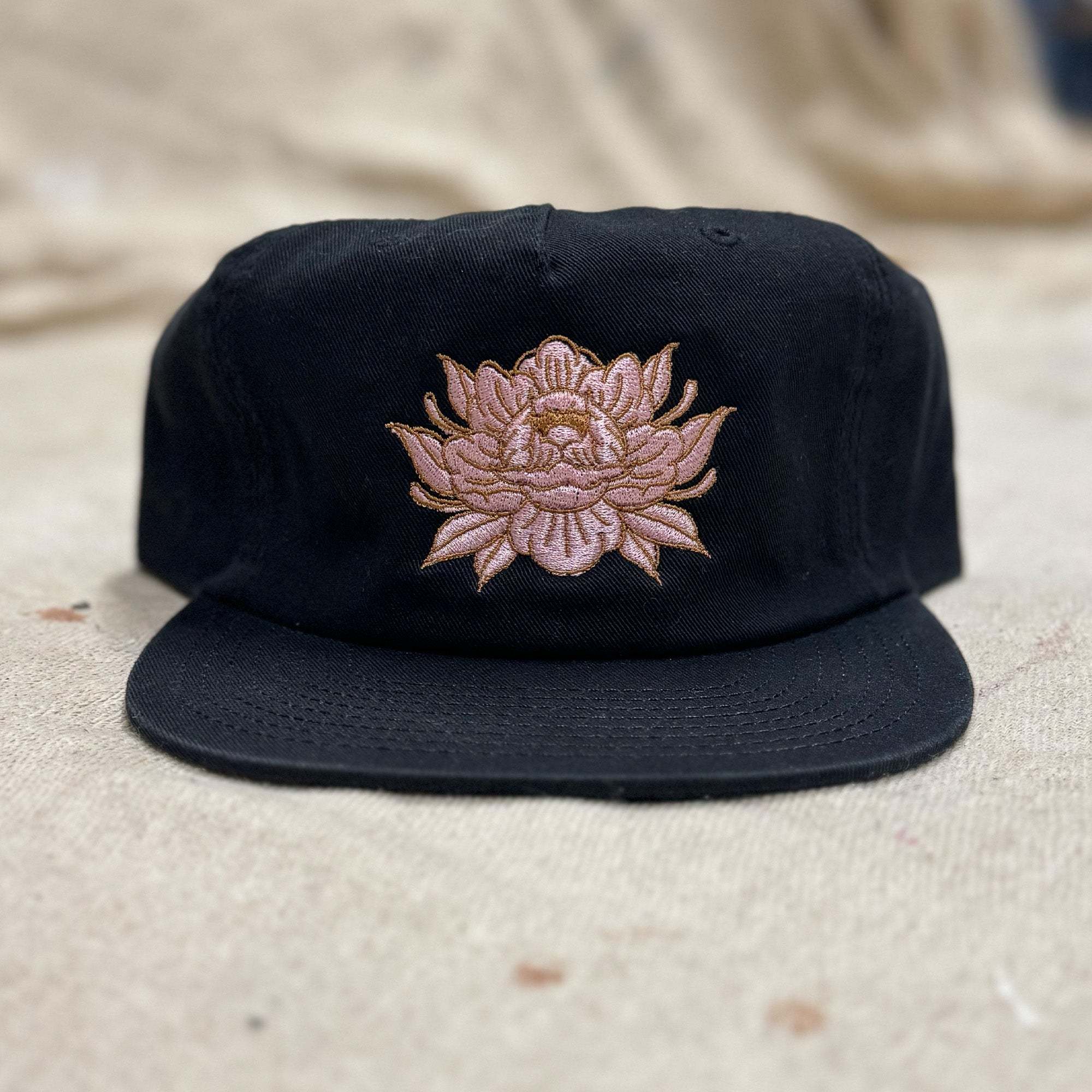- Gorra negra sin estructura de 6 paneles