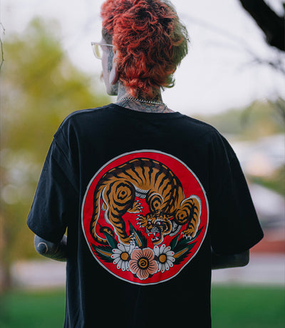 - Large Tiger back print, with matching floral front print