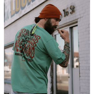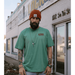 - Nevermind remade on essential 90' style Oversized/ Boxcut tee in Sage Green.