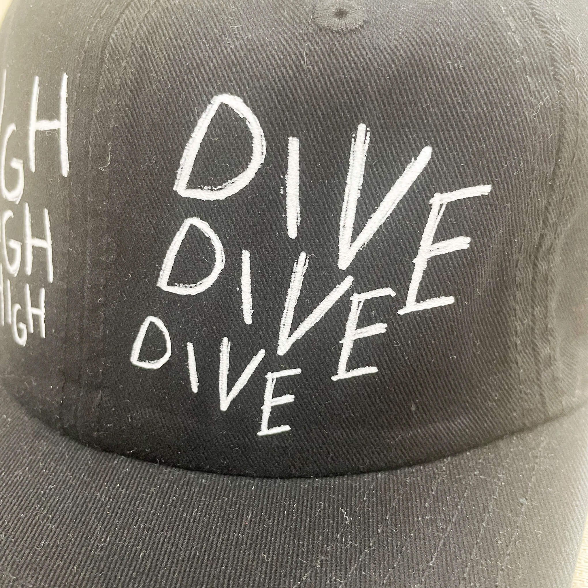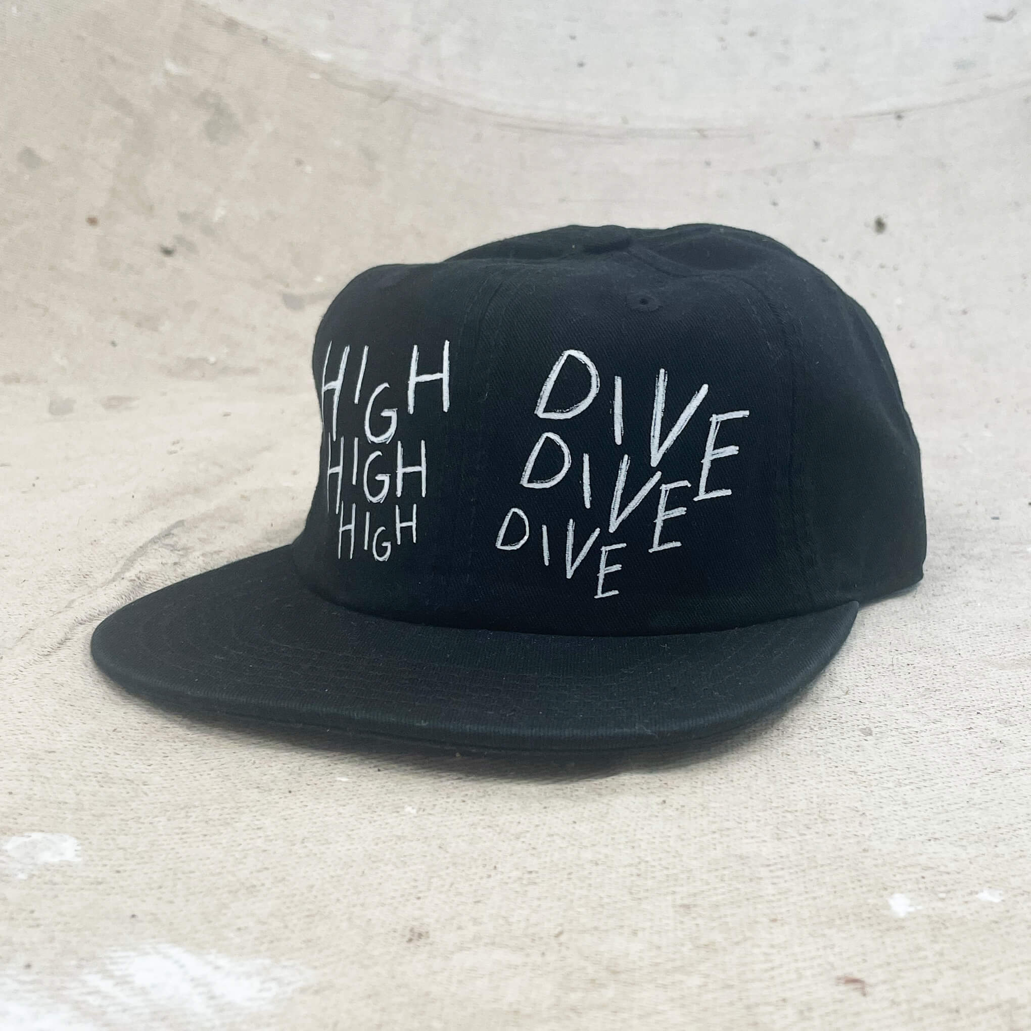 - High Dive Text Printed with Chalk Like Effect On Front three times