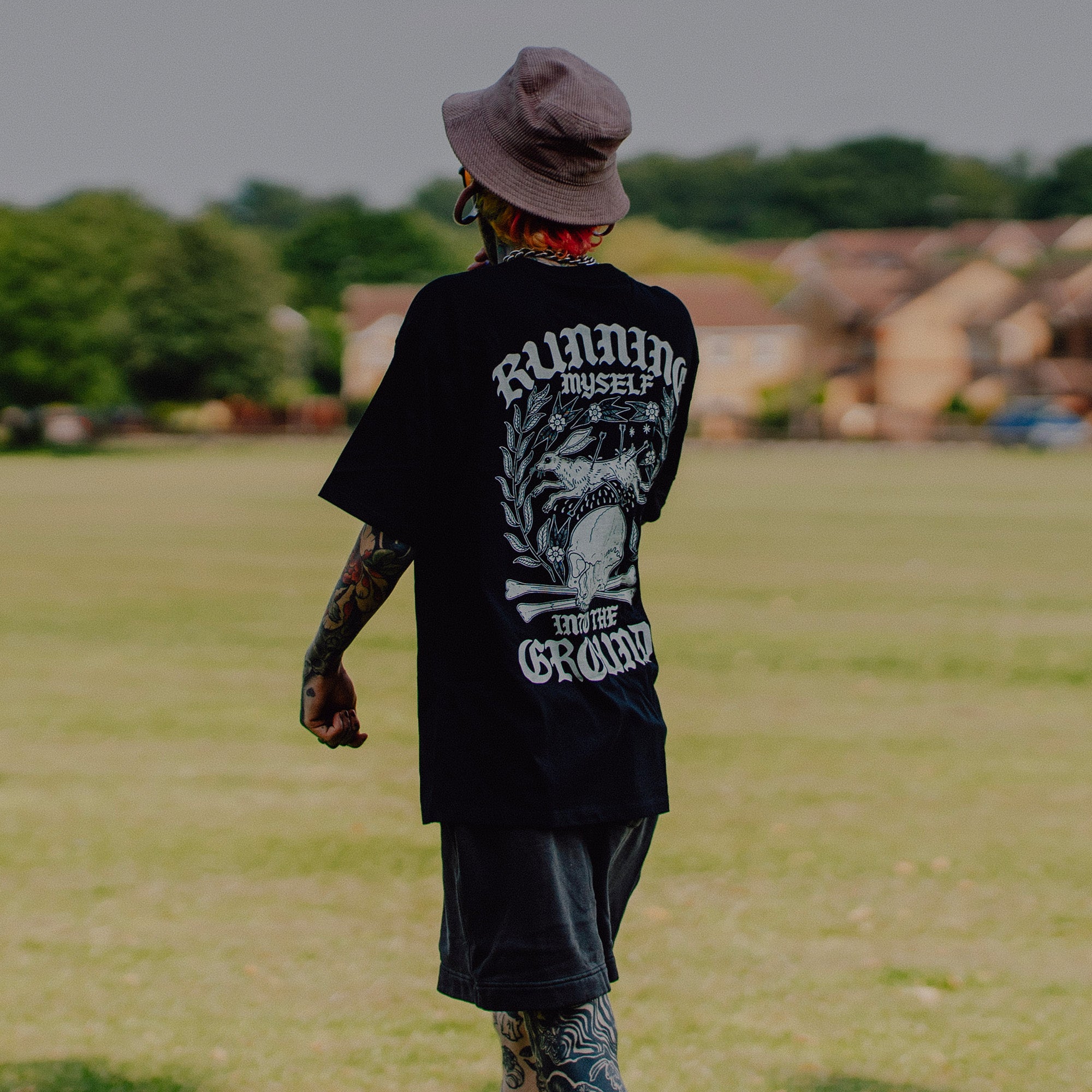 - Full Back print of our "Running Myself Into The Ground" design, with