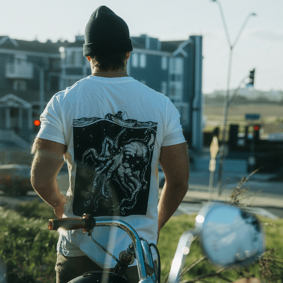 Kraken is the perfect t-shirt for fans of mysterious sealife. Its heavyweight and classic fit make it a comfortable everyday choice, while its organic cotton ensures breathability. The kraken design print on the back adds a unique touch to the shirt, making it a stylish addition to any wardrobe.